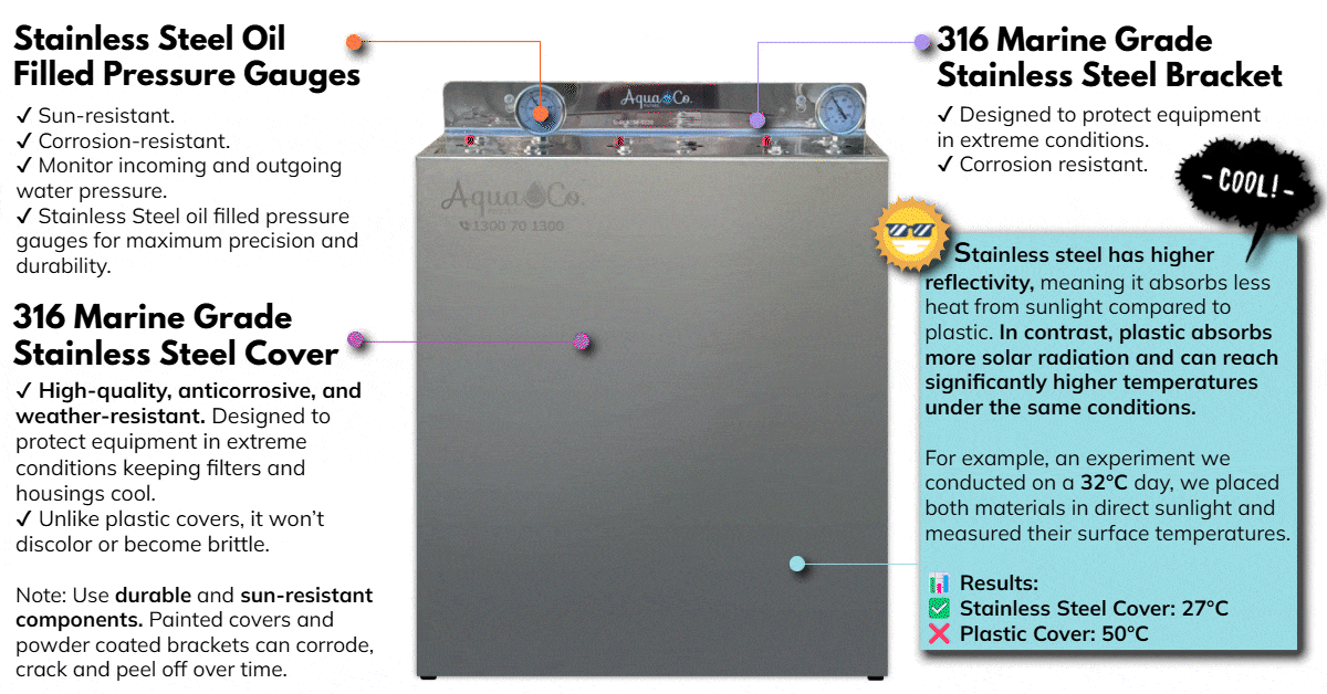 In over 99% of installations, our customers report no significant pressure drop using our Whole House Water Filters. With the built-in pressure gauges, you can effortlessly monitor both incoming and outgoing water pressure, making it easy to determine if any pressure variations arise from the system itself.