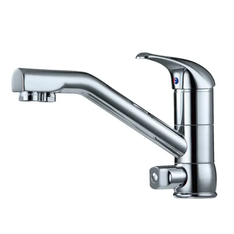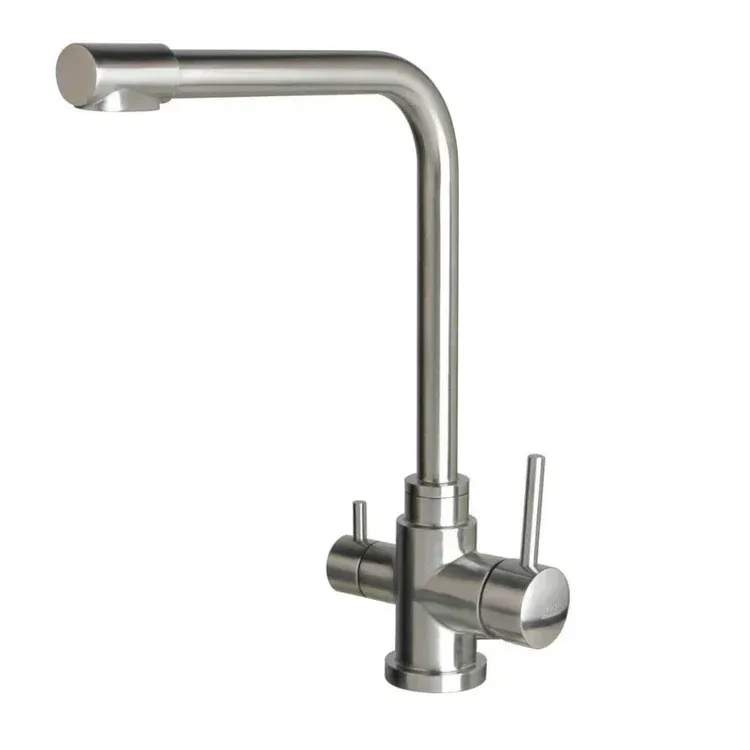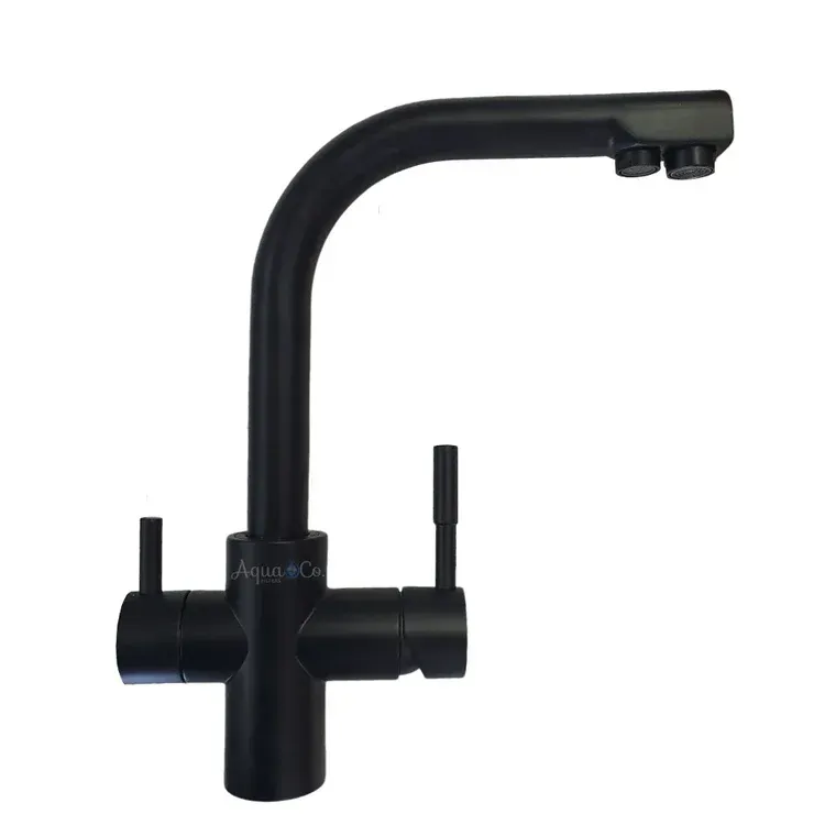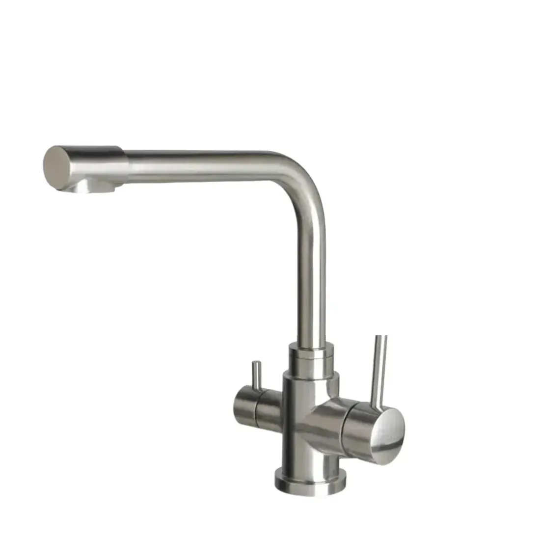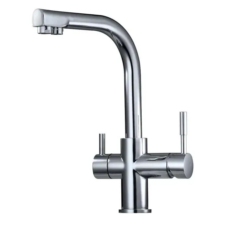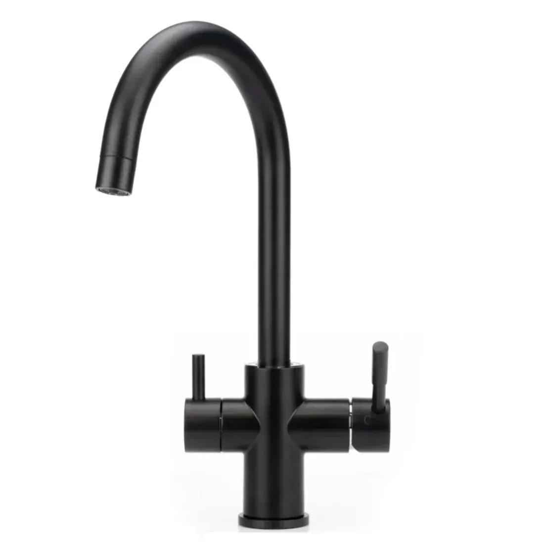 Sleek tap combining hot, cold, and filtered water in one elegant fixture.